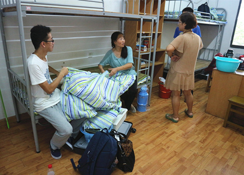 拖着沉重的行李的新生家长们,来回奔波于计财处、大活缴费处以及玉兰路之间,为孩子们的入学报到而费心尽力。骄阳虽然能洒在他们身上,但他们心底对孩子的爱犹如一股清泉,滋润心田。在把蚊帐、被褥都安排妥当后,新生家长还不忘向志愿者们询问学校和全球最大的博彩平台